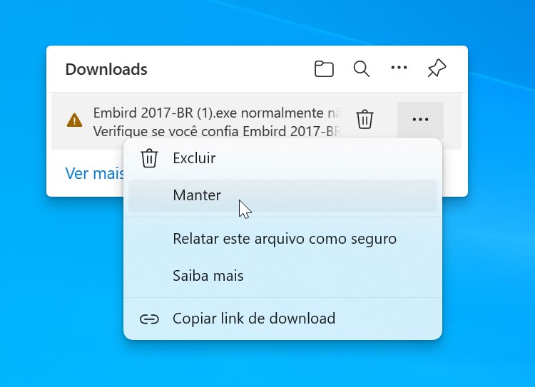 na hora do download pelo navegador Microsofty Edge (padrão