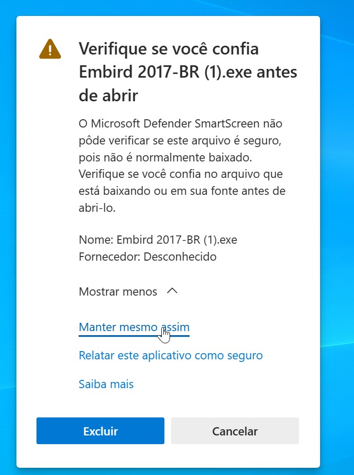 4- Nessa janela clique em (manter mesmo assim)